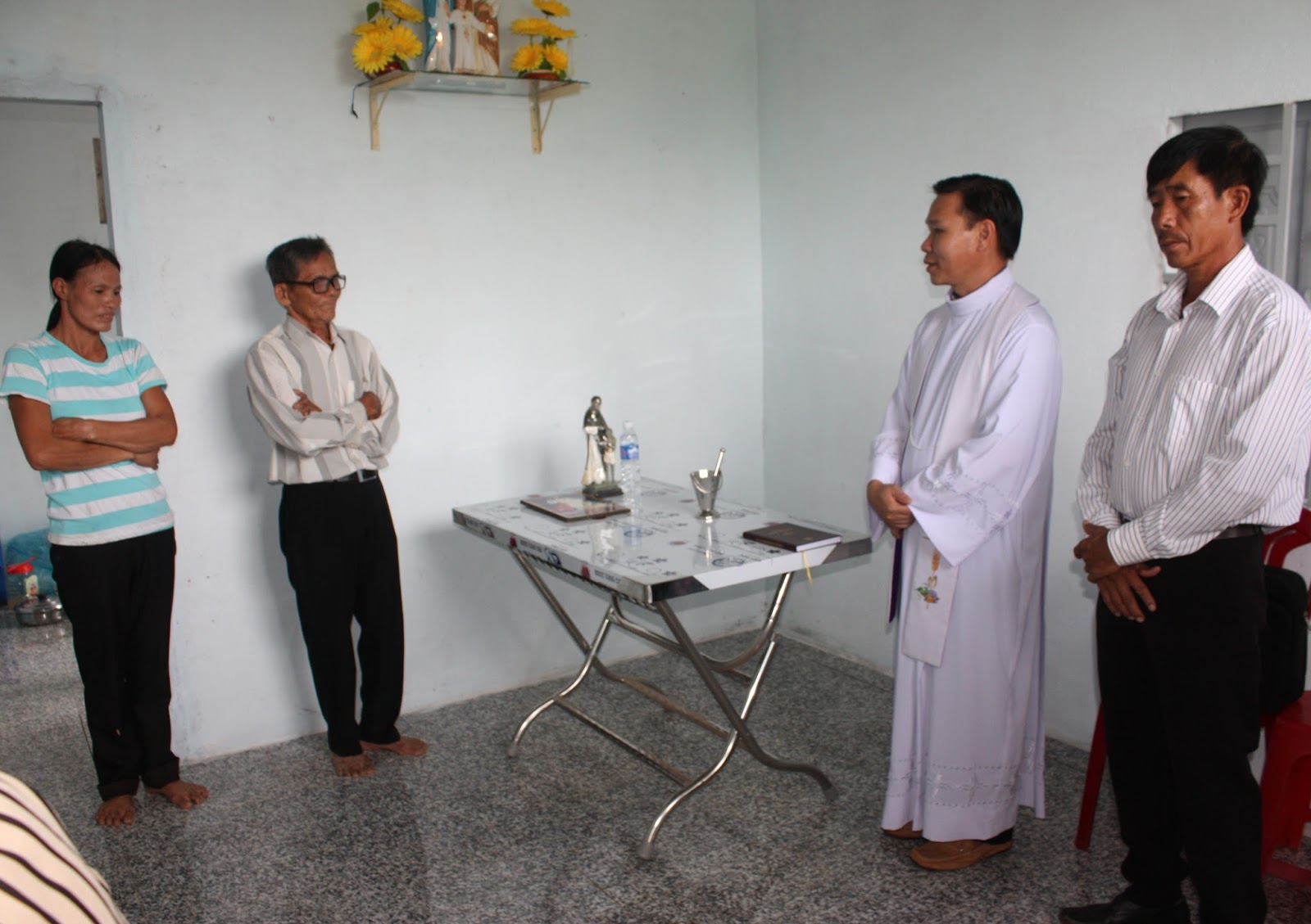 Sáng nay ngày 15/7/2017, Cha Phêrô Nguyễn Châu Sinh – Chánh xứ Vinh Hà cùng với BĐH Họ Phi Lộc, bà con và Quý ân nhân đã đến làm phép và trao căn nhà cho ông bà Giuse Lê Văn Hoa hiện sinh sống tại “mé ngoài kênh” thuộc họ đạo Phi Lộc.
