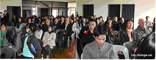 Trước giờ thánh lễ, đồng hương Bình Giả tay bắt mặt mừng, chào hỏi nhau trong tình thân ái. Các cha Đặng Đình Nên (từ Sydney qua), cha Nguyễn Hồng Ánh (Phó Xứ tại Craigieburn, Melbourne), cha Nguyễn Văn Bộ và Nguyễn Thái Phúc (cả hai cùng người Quan Lãng Bình giả vừa từ Việt Nam qua thăm Úc, cũng được Hội mời đến dâng lễ cho đồng hương) là những thỏi nam châm thu hút mãnh liệt những đồng hương có mặt. Người người vây quanh các cha, tay bắt mặt mừng, thăm hỏi, trò chuyện…