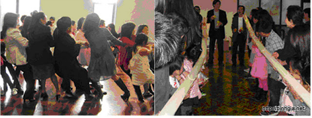 Sau đó, mọi người tham dự tiệc liên hoan và chung vui văn nghệ, cùng các trò chơi lành mạnh. Trên các bàn tiệc các chị trong ban tổ chức sắp sẳn các món ăn gọn gàng trông rất hấp dẫn, trang trọng và đẹp mắt. Buổi liên hoan được bắt đầu qua nghi thức ban phép lành của ăn do cha Nên chủ sự. Hơn 200 đồng hương tham dự đã cùng nhau “chia ngọt sẻ bùi”, cùng nhau ôn lại những hình ảnh, những mẫu chuyện,và những kỷ niệm xứ Bình dấu yêu…